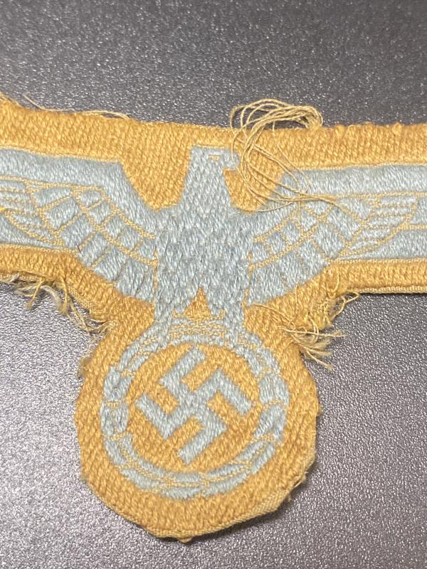 Original uniform removed DAK breast eagle in bevo. Textbook original piece.