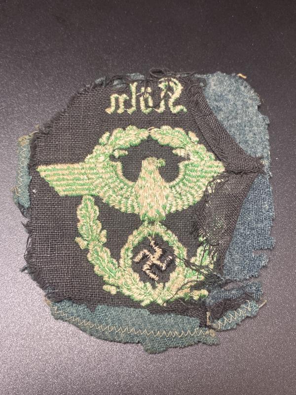 Original cut off Köln city police sleeve eagle. Zig zag machine stitching present around some of the edges.