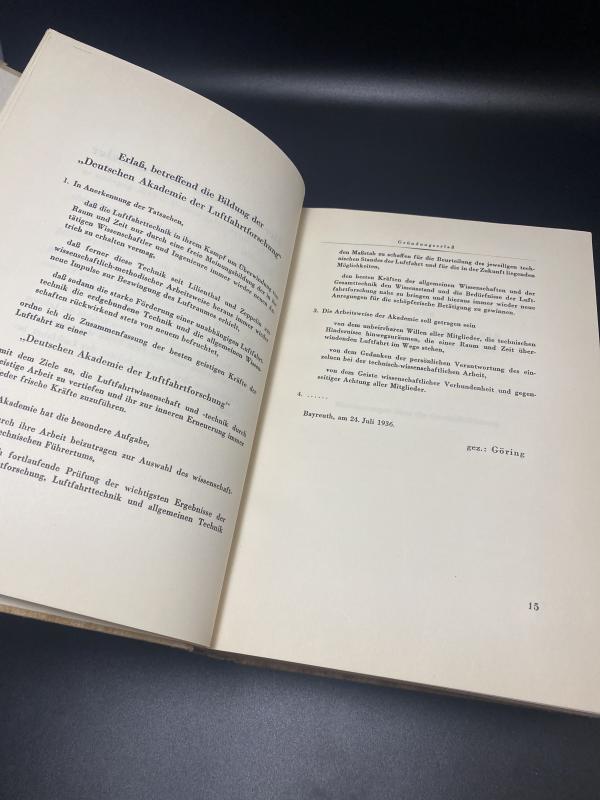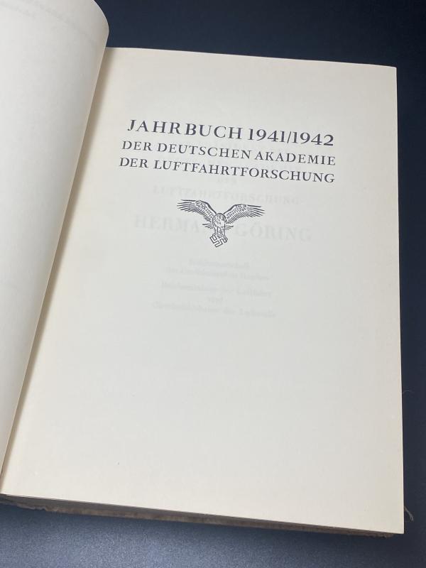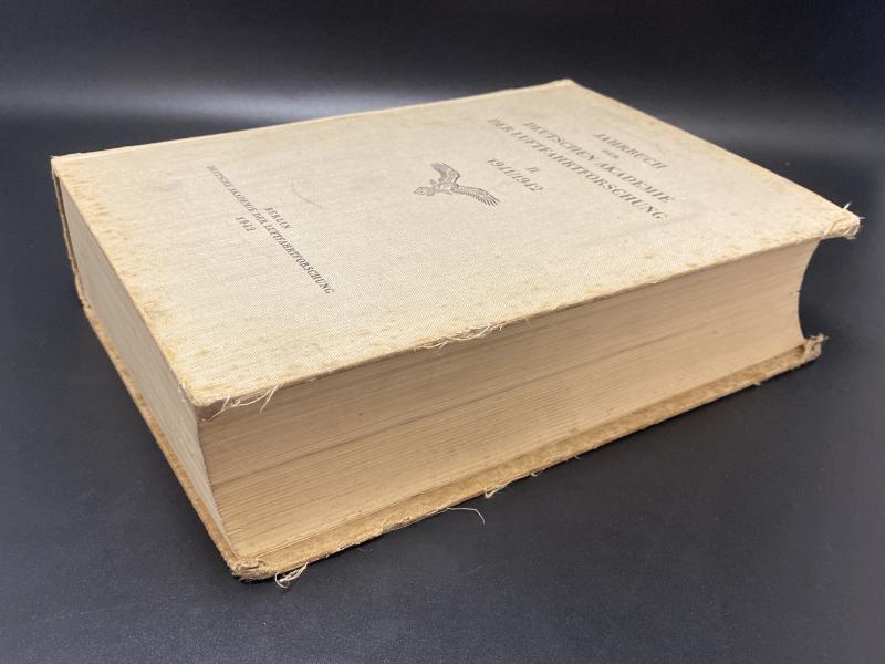 Original rare print of the Luftwaffe yearbook for the Academy of Aviation Research. A huge book, with 784 pages. Hardback with cloth covering.