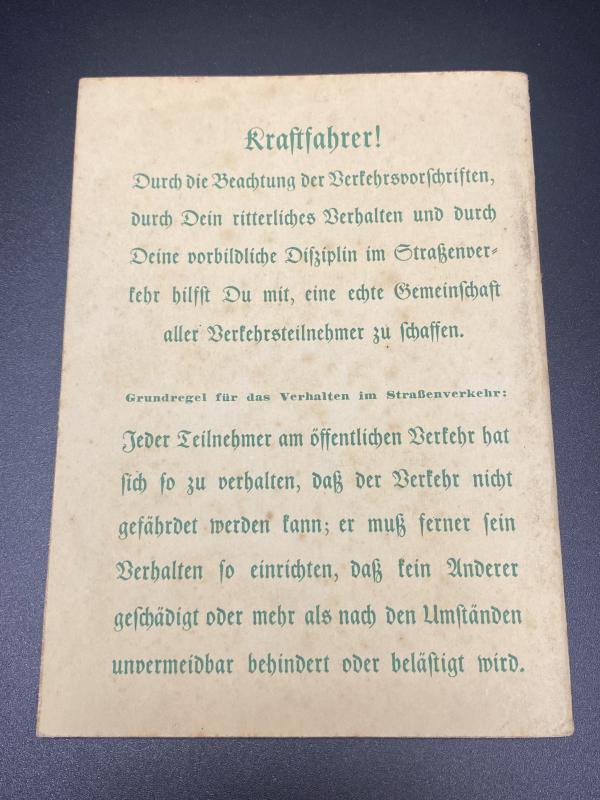 Original German Police issue Kraftfahrer Im Verkehr small handbook. In good condition.