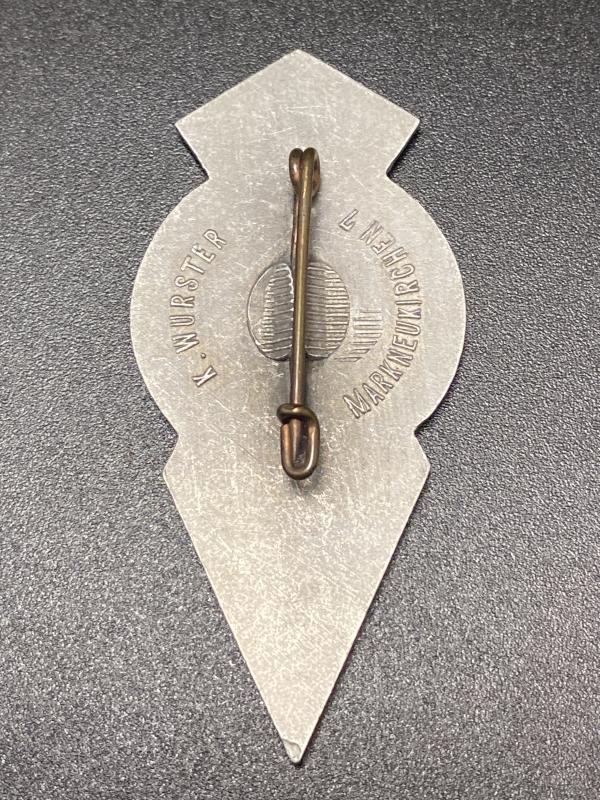Original and rarely encountered HJ sportfest 1935 day badge. In good condition, complete with pin. Maker marked Karl Wurster.