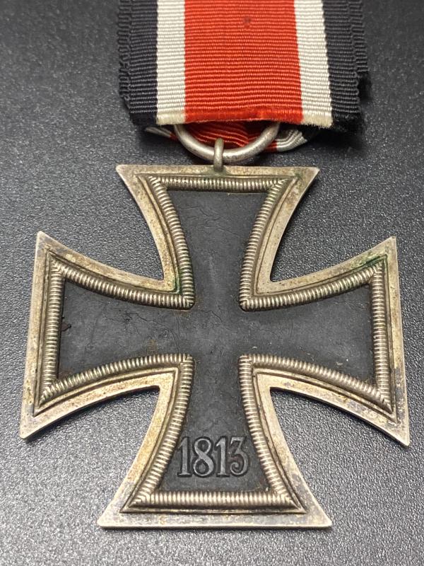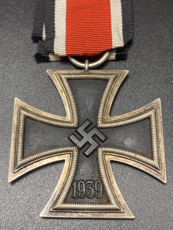 Original WW2 German Iron Cross Second Class unmarked ring however attributed to the maker Klein & Quenzer. Complete with ribbon.