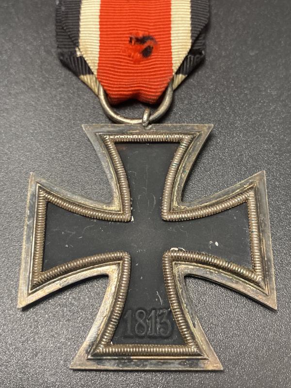 Original WW2 German Iron Cross second class complete with ribbon. In good service worn condition. No makers mark present on the ring.
