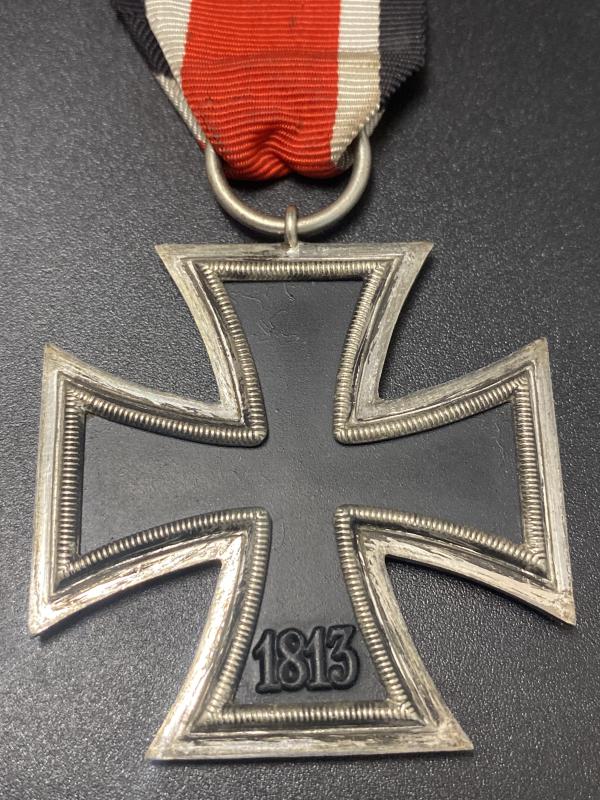 Original WW2 German Iron Cross second class complete with ribbon. In good service worn condition. No makers mark present on the ring.
