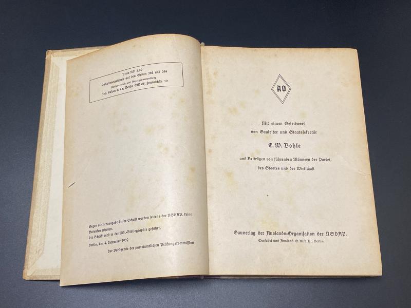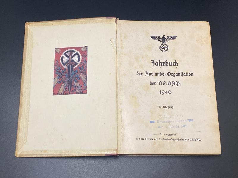 Original 1940 print of the NSDAP yearbook for foreign party representatives. Outside of the book has had a protective cover added. All pages present.