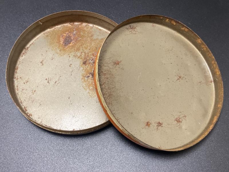 Nice early war example of an army packaged Scho-Ka-Kola tin. Contents empty. Tin in good overall shape. No rust, just natural wear to the lid. A very desirable bread bag filler!