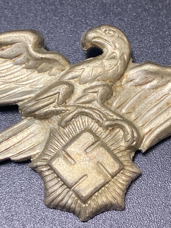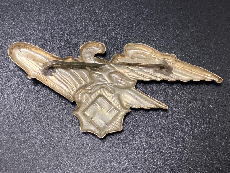Original nickel steel RLB visor eagle. In good used condition with pins remaining present on the reverse. No makers mark.