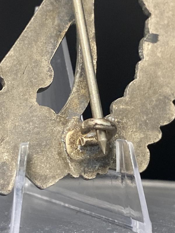 Original Infantry Assault Badge in silver made by Sohni, Hobach & Co 41. Award made of zinc with factory applied setup on the reverse.