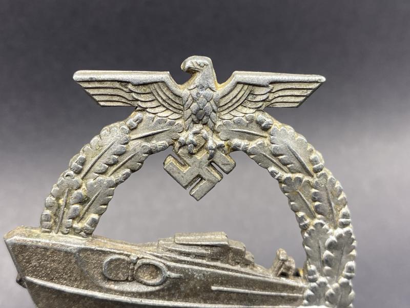 Original mid-late war period Kriegsmarine E-Boat badge manufactured by Schwerin of Berlin. Superbly made from a desirable maker. Badge in very good condition with gold wash on the wreath absent.