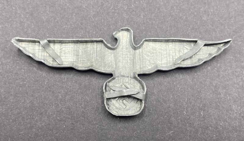 Original German army visor eagle made of zinc fitted with four prongs. A rather uncommon late war variant.