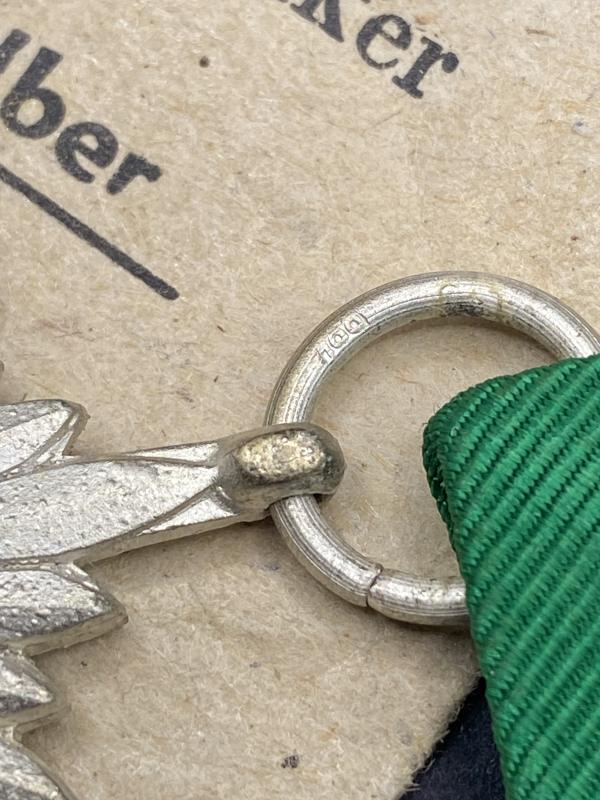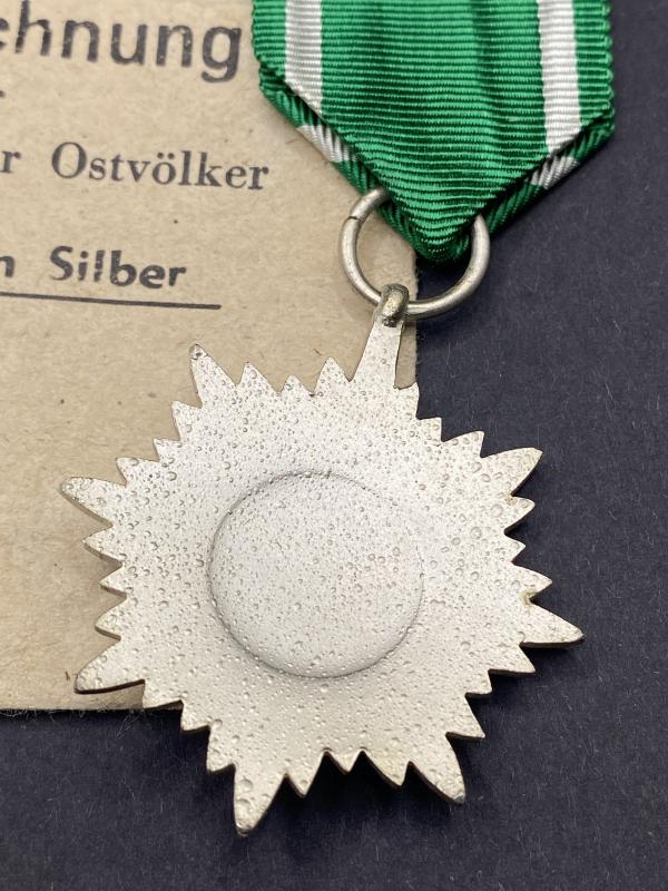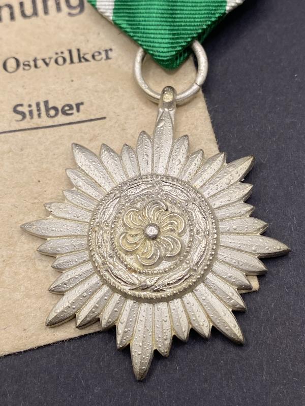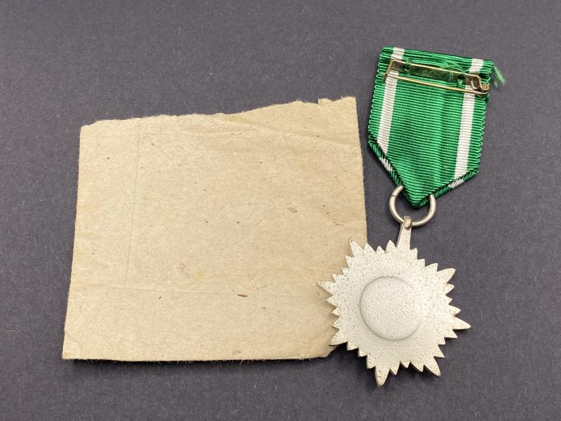 Original Eastern Peoples Award Second Class in Silver made by Wachtler & Lange with corresponding maker number 100 on the ring. Complete with ribbon in almost perfect mint condition. Partial packet also included.