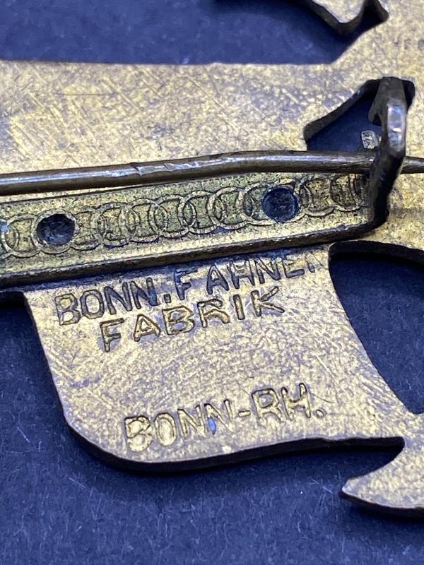 Original WW1 German navy veterans badge. Made of brass with enamel imperial flag. Rarer example with the M.V. Mark on the anchor with district on the lower part of the anchor. Maker marked on the reverse. Complete with pin.