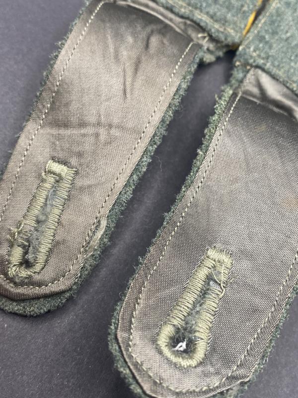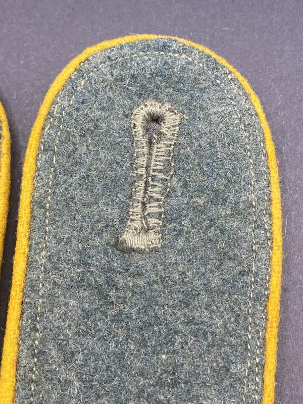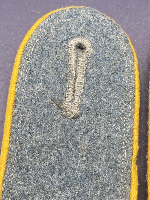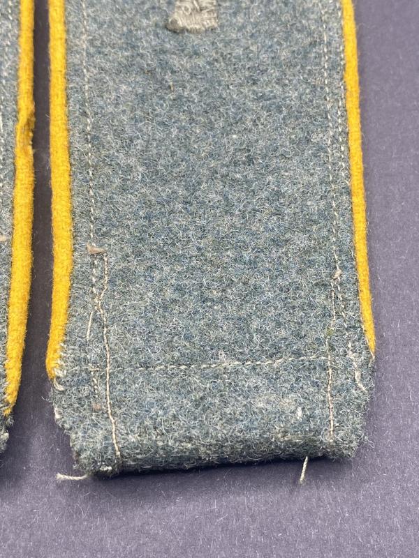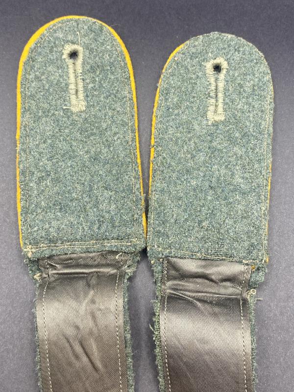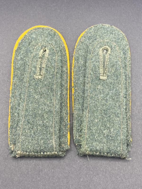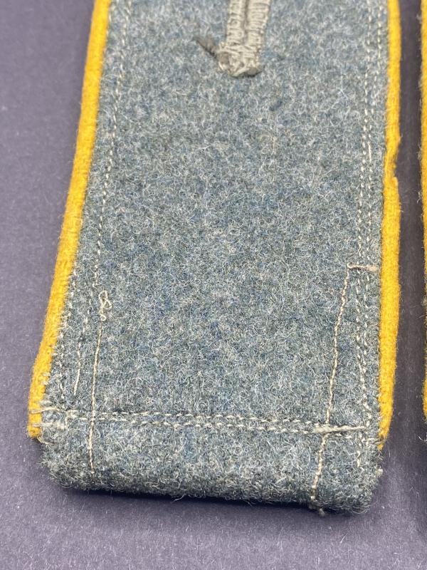 Original pair of lightly used German army cavalry NCO shoulder boards. Made of field grey wool with golden yellow piping. Complete with straps. In good condition.