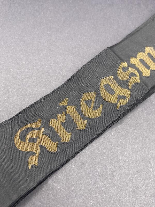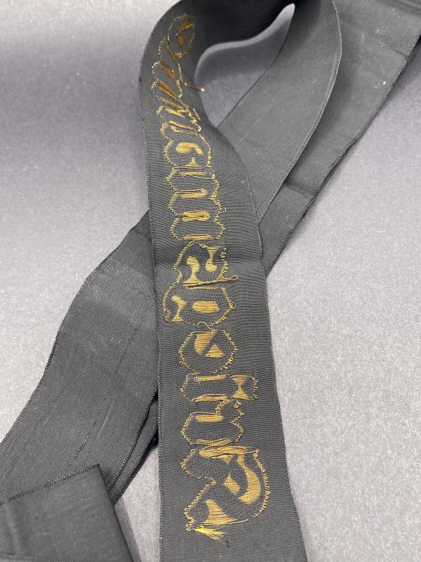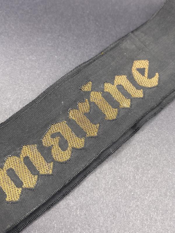Original cap tally for the Kriegsmarine. Bevo woven. In good used condition and a full length example.