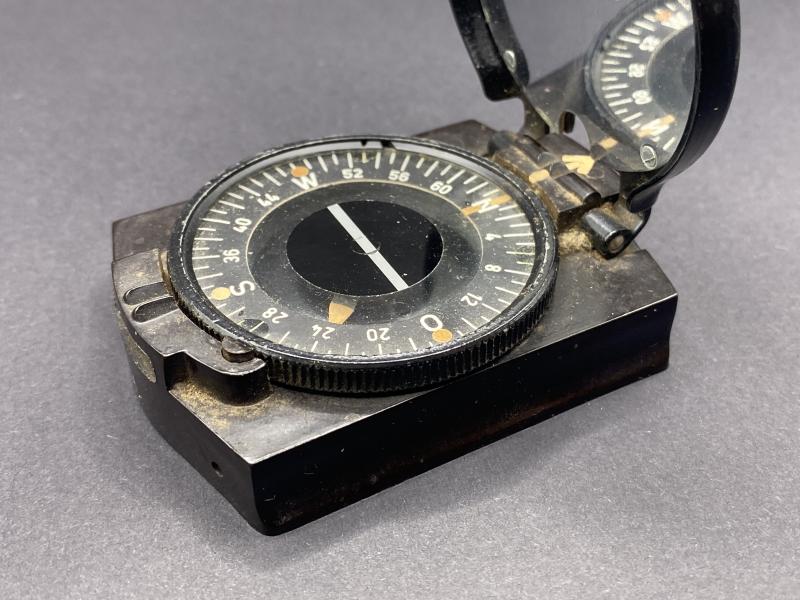 Nice original German army marching compass. In very good working condition. Bakerlite with metal flip up cover. Marked on the underside.