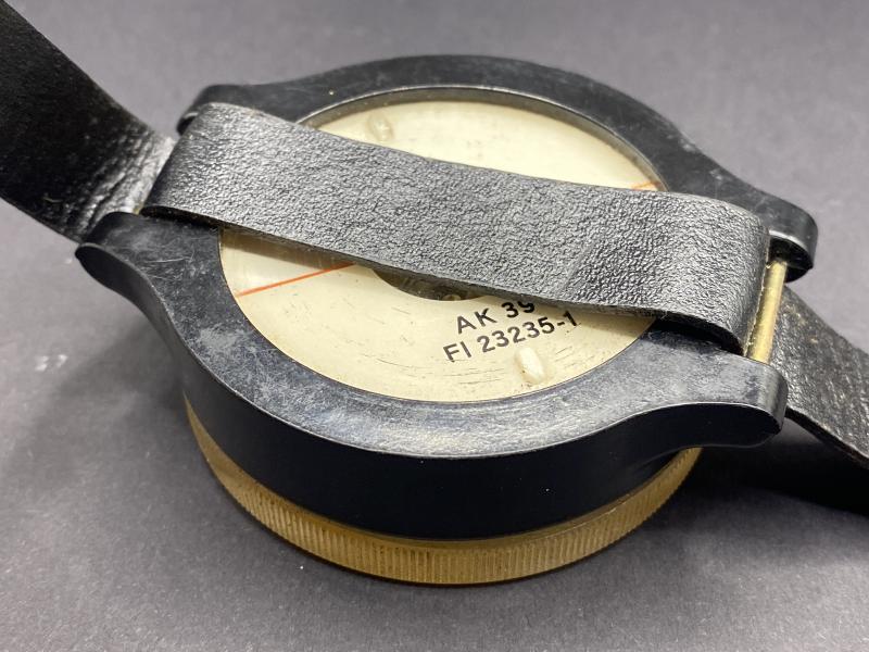 Original fully functional German Luftwaffe AK39 wrist compass. Complete with a later applied strap. Nice clear markings on the reverse. A great example overall.