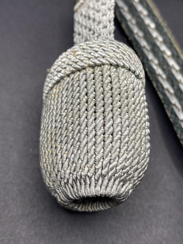 Original Sword knot for the Third Reich period German officers sword. Grey leather strap with silver wire embroidery. In mint unissued condition.