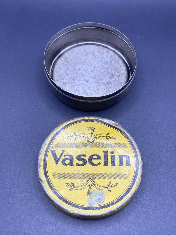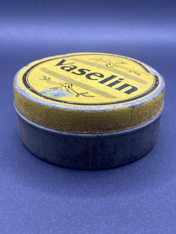 Original empty tin of Vaselin. WW2 period. A few small dings however a nice example for display.