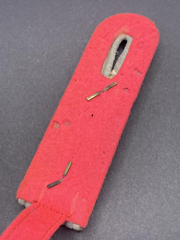 Original German army panzer Hauptmann (Captain) slip on shoulder board. A bit of moth nip present on the underside. Piping is bright pink, unfortunately the images do not pick this up well. If you require more pictures please contact us.