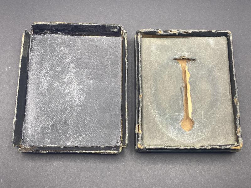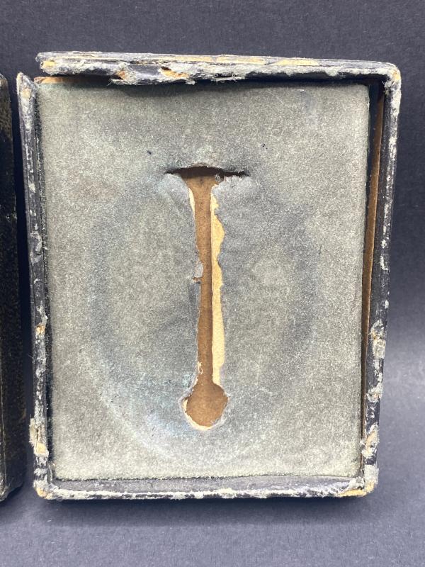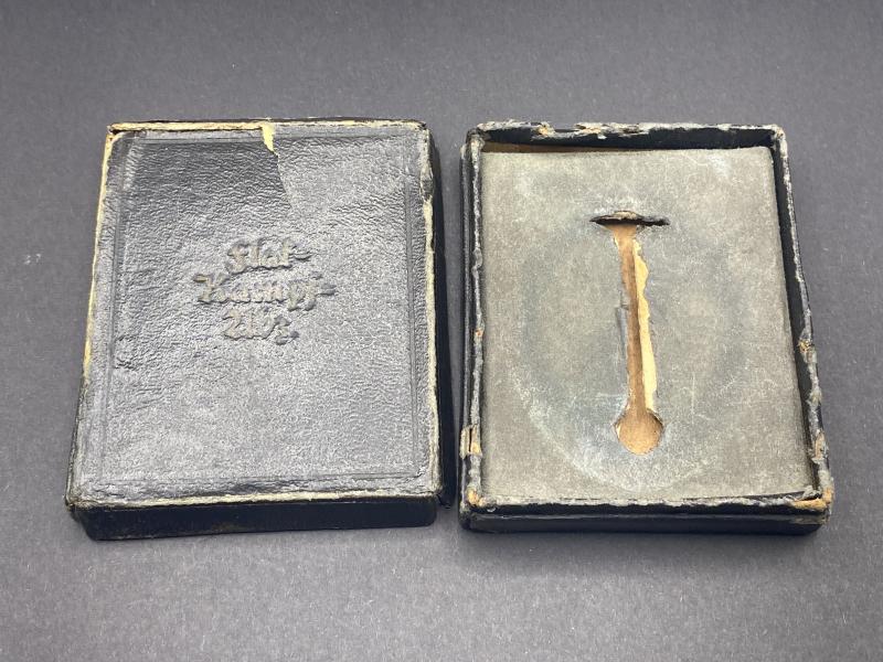 Original box for the Luftwaffe Flak badge. Box is complete with insert to display. Somewhat tatty but untouched. The badge we originally recieved with this box did not actually fit it so decided it was best to split them. This box would be suitable for a badge fitted with a regular or small barrel hinge.