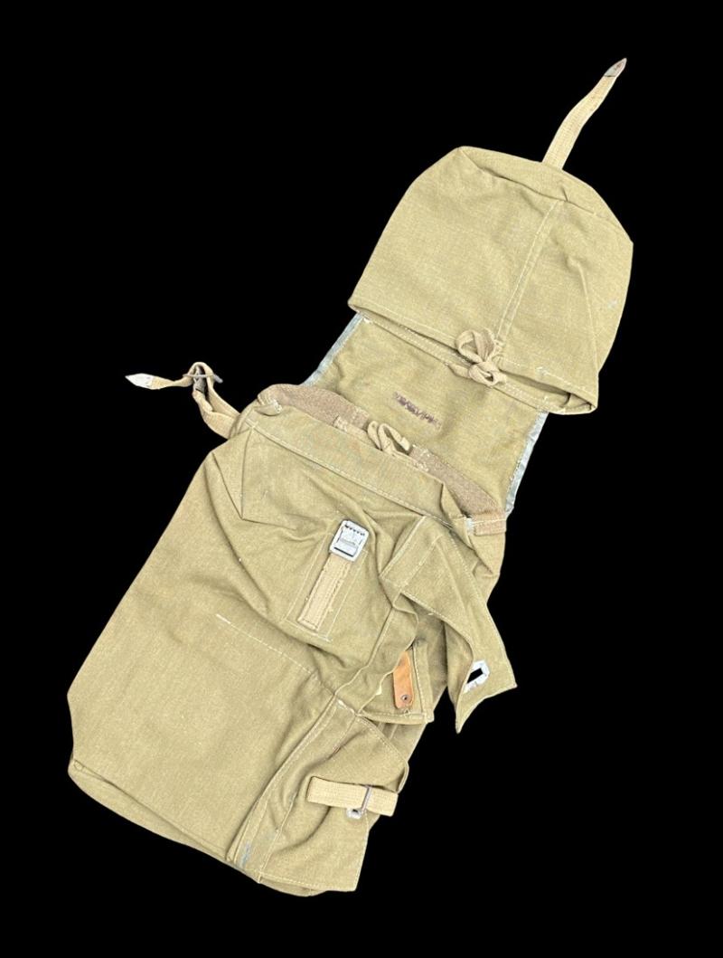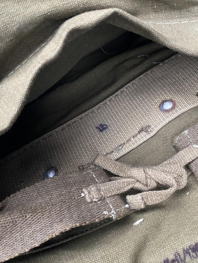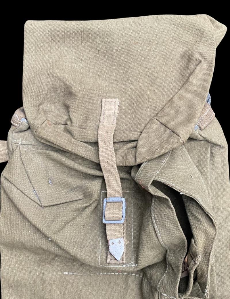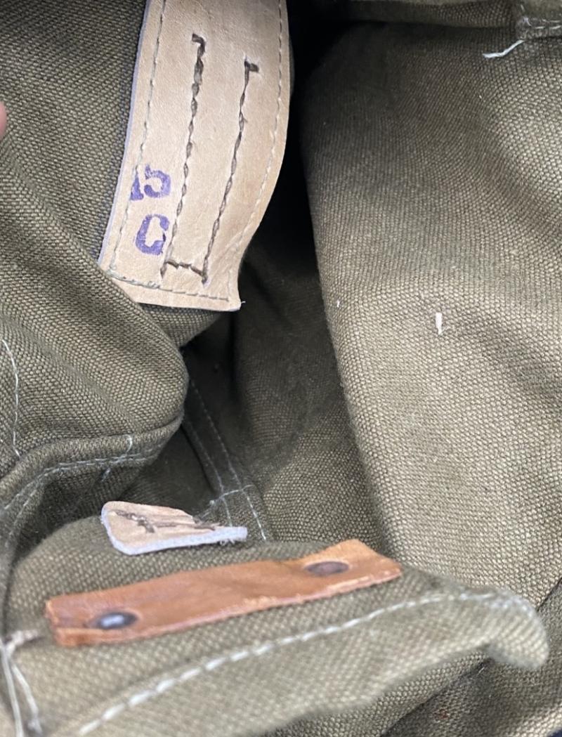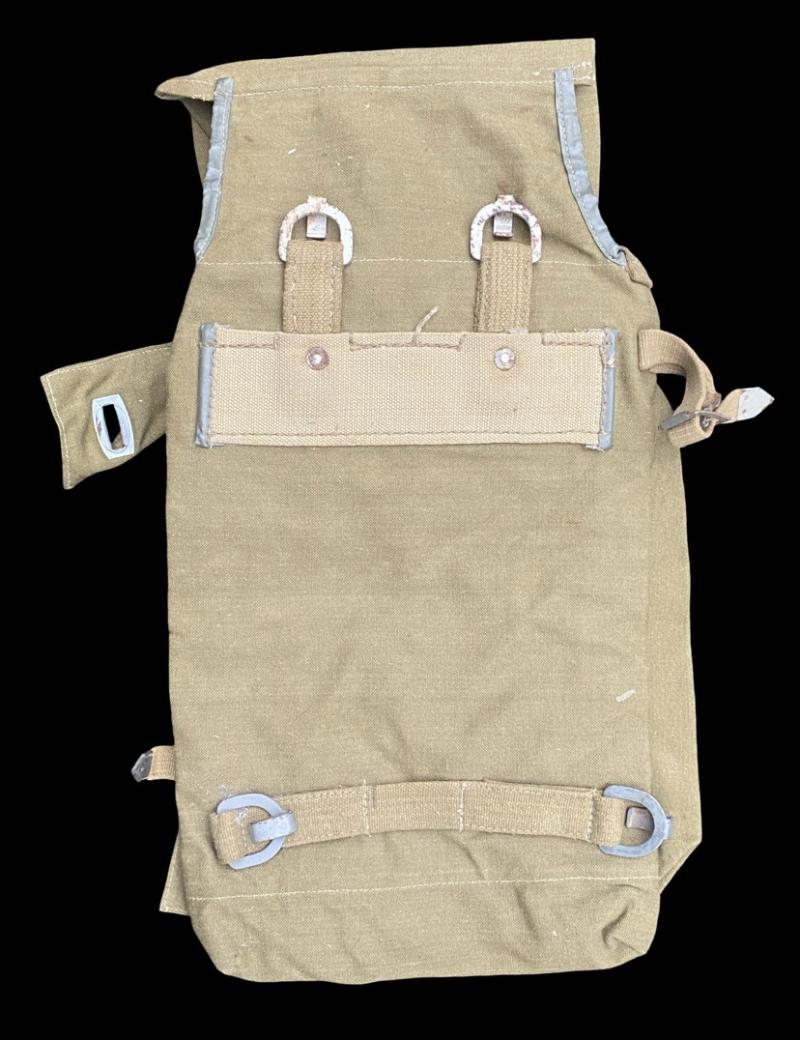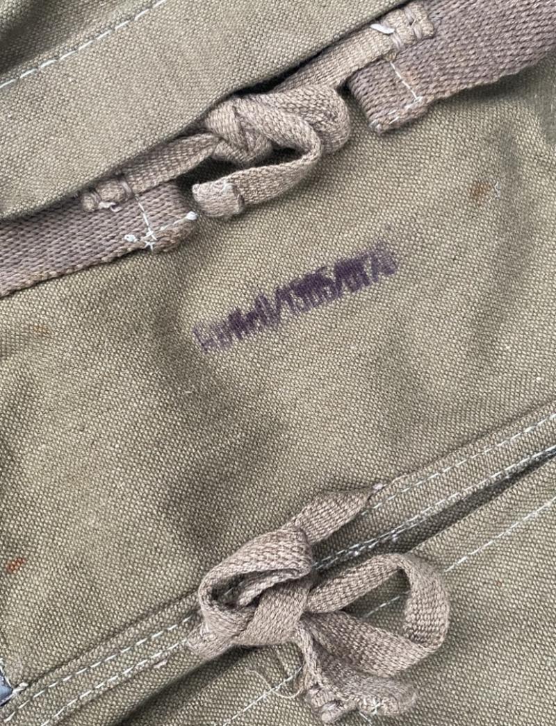 Original German pioneer/ assault engineers rear pack. Pack is a later war example with Rbn number present. Canvas bag with accompanying canvas straps. The pack is complete with all compartments and their fasteners. Loops on the reverse to attach to an A frame or Y strap. In good near mint condition.
