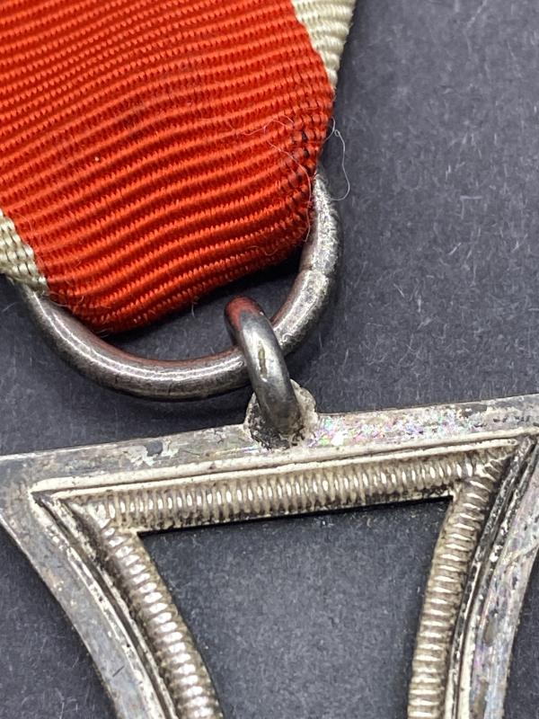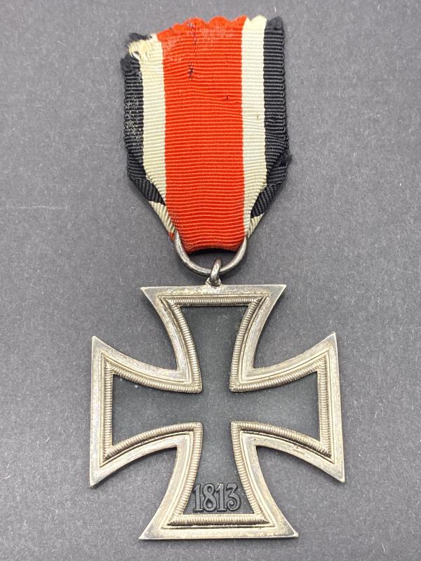 Original WW2 German Iron Cross second class complete with ribbon, cross is a design of the maker Wachtler & Lange. No makers mark present.