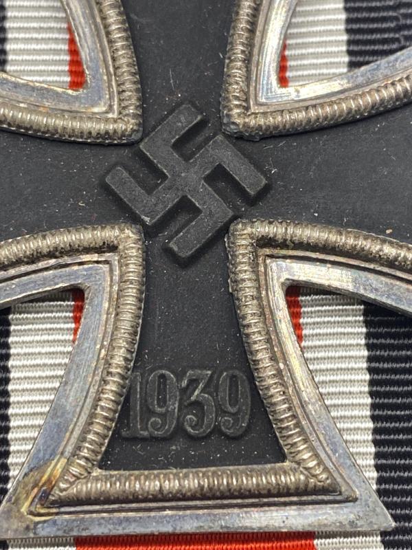 Original Iron cross second class maker marked 55 for J.E.Hammer & Sohne. A nice award in good shape, complete with ribbon.