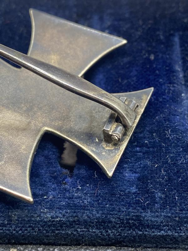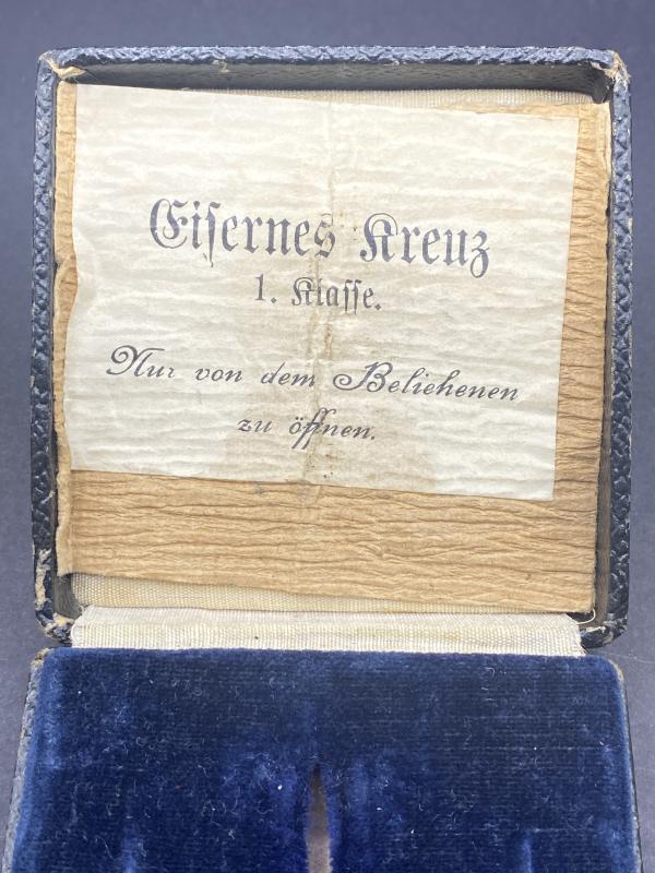 Original WW1 vaulted Iron Cross first class complete with superb box. Award carries some nice characteristics including its vaulted design and silver frame. The box has a blue felt like cushion for the award with a “Eisernes Kreuz 1. Klasse” label in the lid. Box is in good shape. Overall a really nice set!
