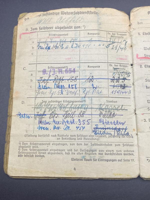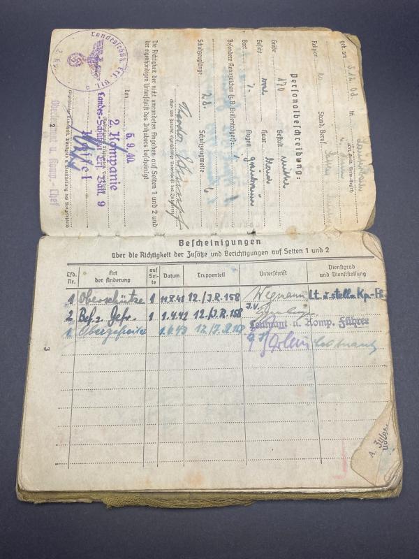 German Army Soldbuch Obergefreiter Theodor Stumpf Inf.Regt.158