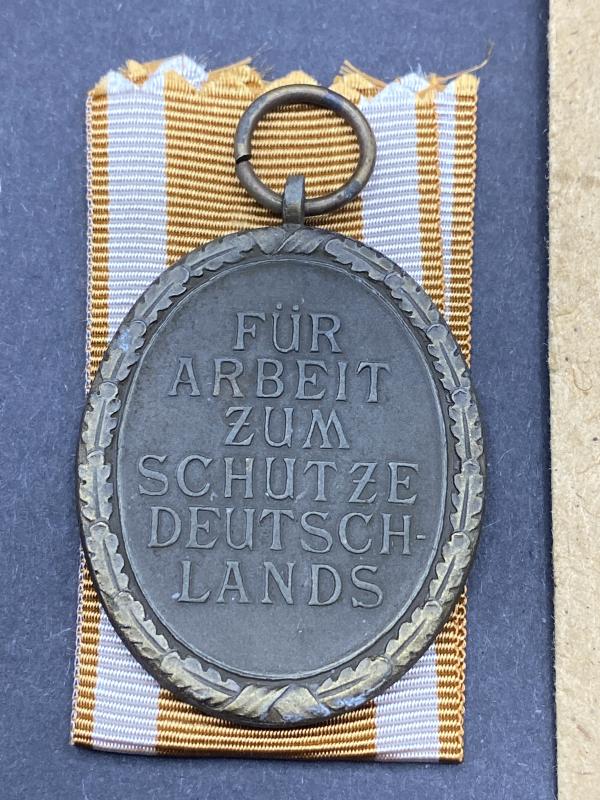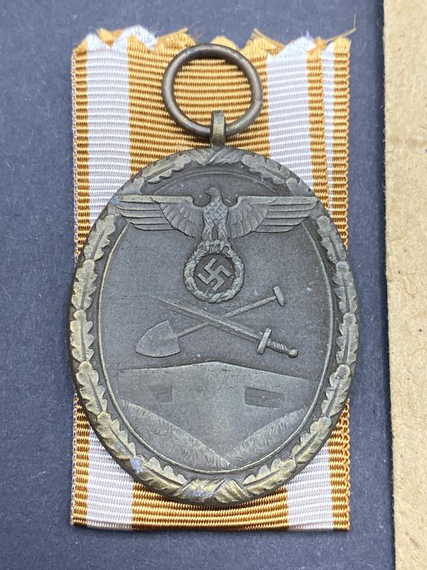 Original Westwall medal, zinc type with ribbon. Complete with packet. Produced by Carl Poellath.