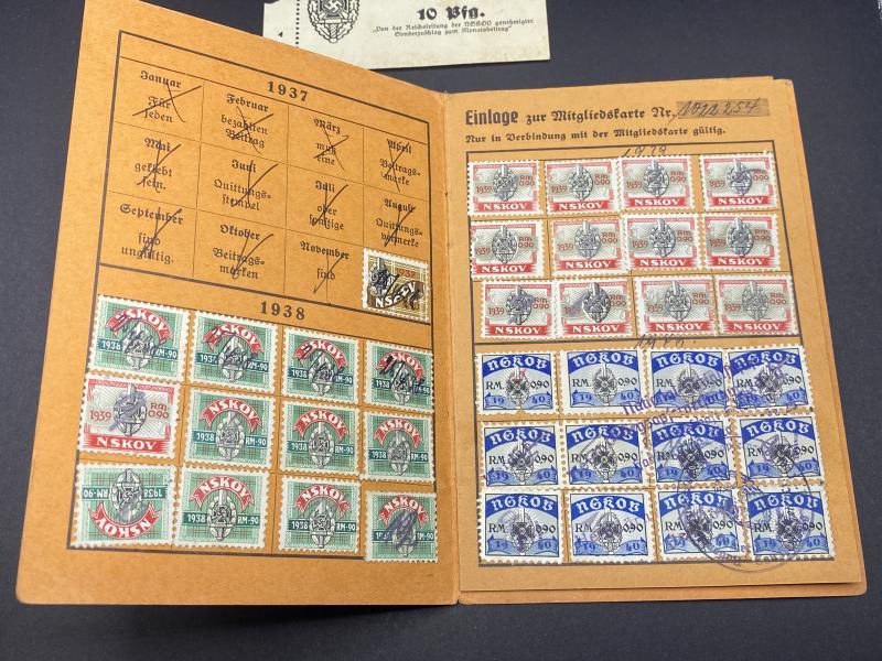 Original Third Reich NSKOV (Military Veterans Association) members book with entries 1937-1941.