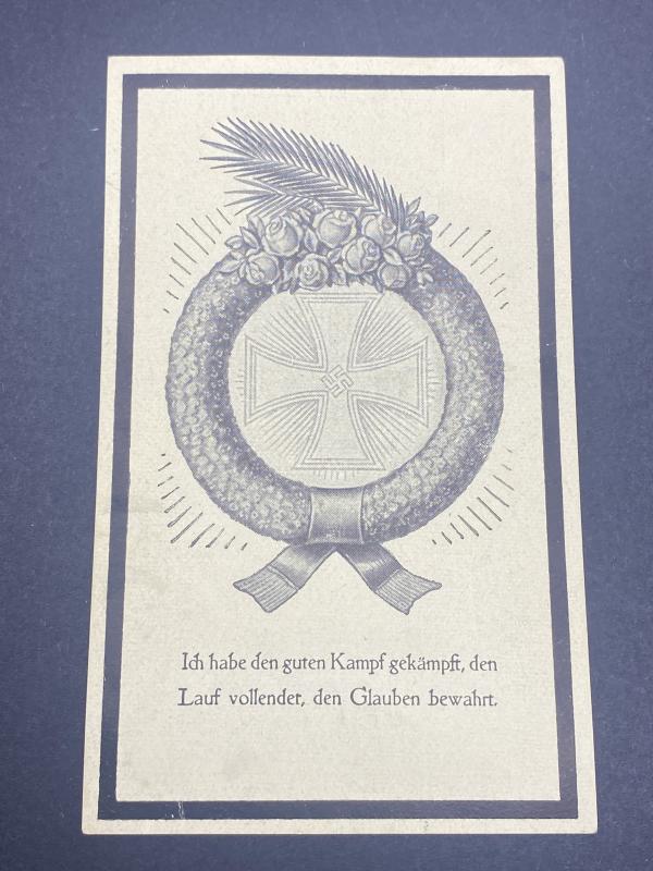 Original German navy death card to Marine Gefreiter Fritz Weinzierl who was killed in action in the Normandy region aged 17 on the 14th June 1944. He was buried at the Langatte Cemetery in Bologne.