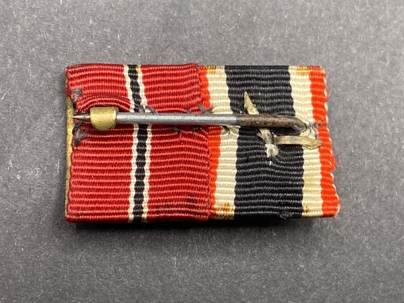 Original WW2 German ribbon bar for the Merit Cross second class with swords alongside the eastern front campaign medal.
