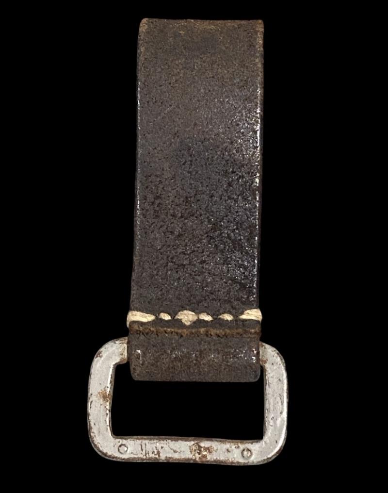 Original German army black leather D ring attachment. No makers mark or date present. In good used condition.