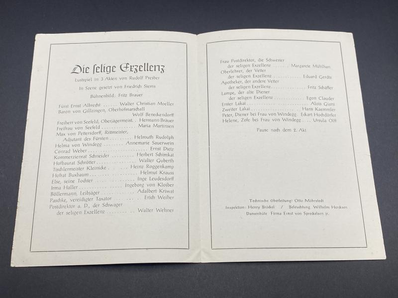 Original program for a play in 1943 at the Thalia Theater in Hamburg. A nice interesting piece.