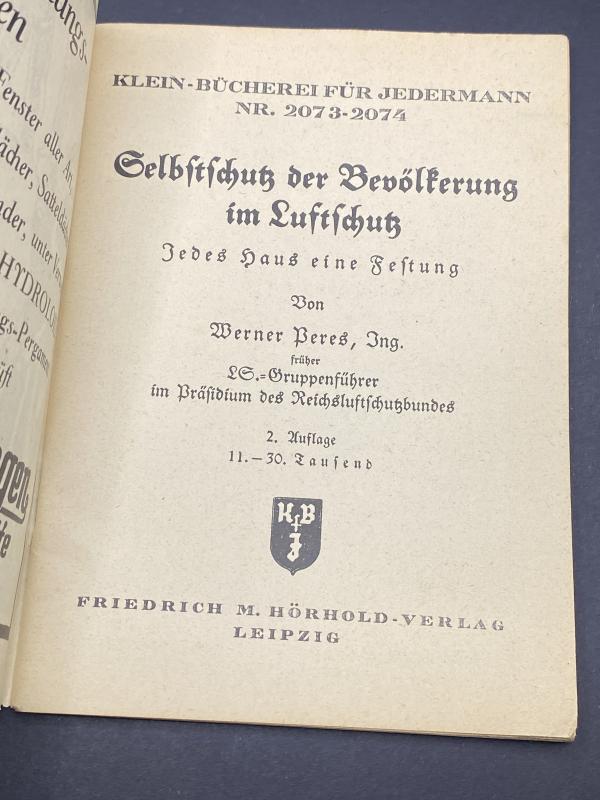 Original Wartime print of Selbstschutz der bevölkerung im Luftschutz by LS-Gruppenführer Werner Peres. In good condition.