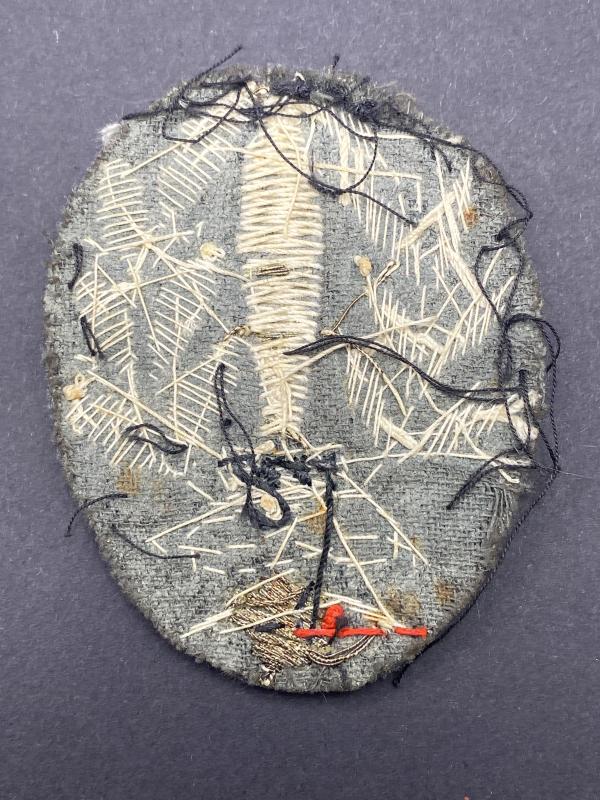 Original scarce uniform removed WW2 Italian Fascists FERT stormtroopers sleeve patch. Insignia made of bullion silver wire with grey wool backing.