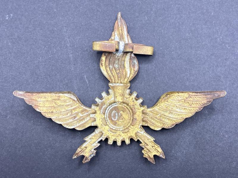 Original WW2 Italian airforce cap badge. Complete with all pins on the reverse. Between the bolts of lighting the tied rope has been removed.