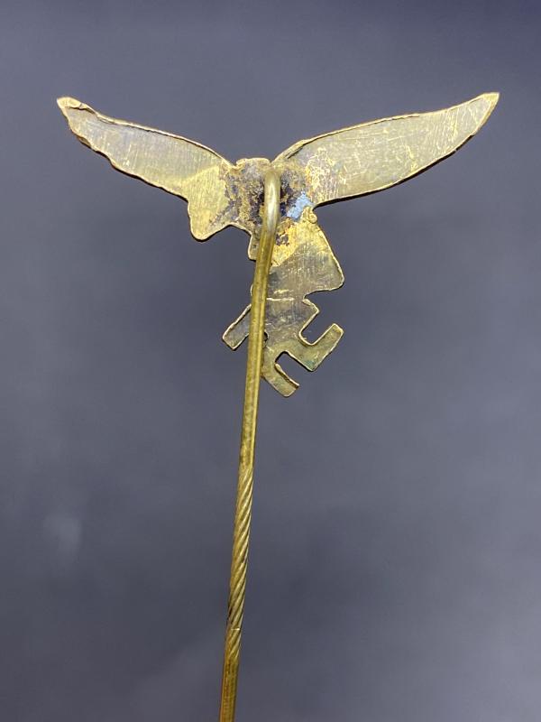 Original Luftwaffe tie pin or stick pin. Good amount of gold wash present, complete with original pin featuring the typically German twisted design.