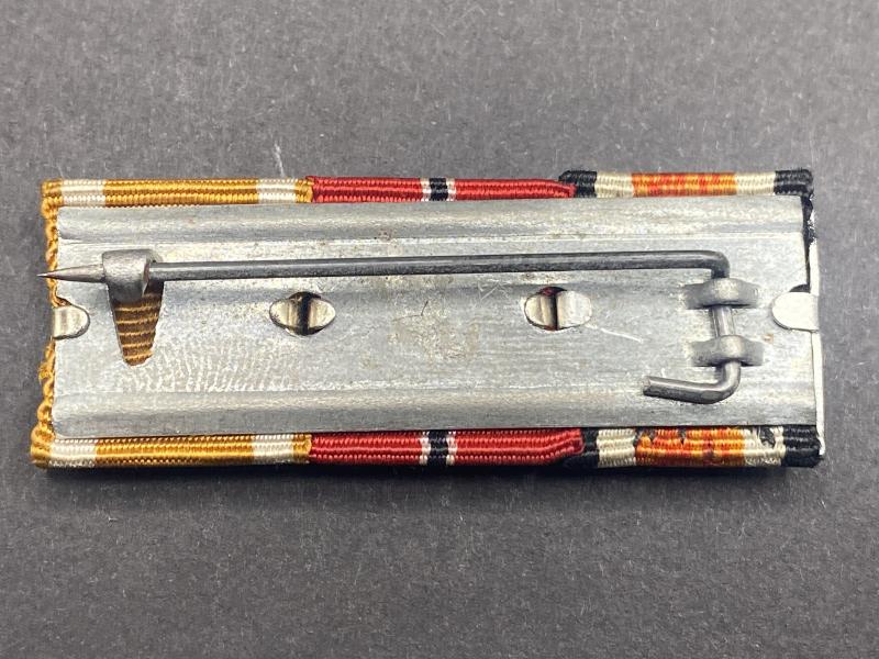 Original German army three placement ribbon bar. From left to right, Iron Cross second class, Eastern front campaign medal, Westwall medal. Complete with rear pin.