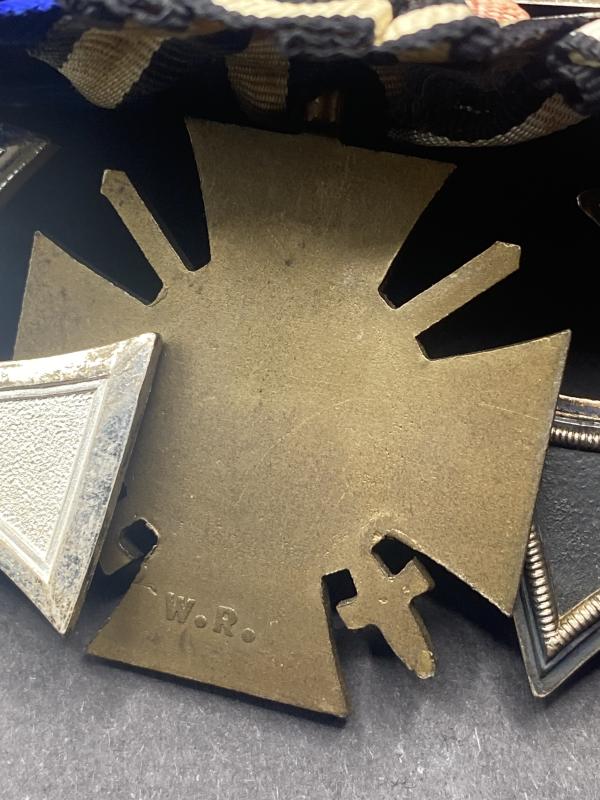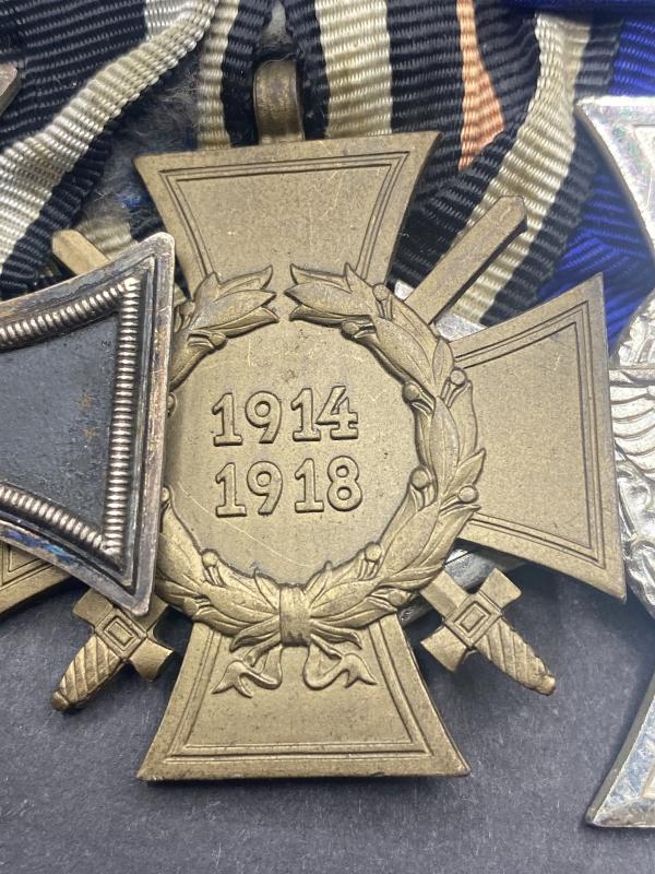 Original WW1 Iron Cross second class alongside Hindenburg cross and 18 year police service medal with reichadler bar. Complete with pin on the reverse. A nice medal bar in good condition.