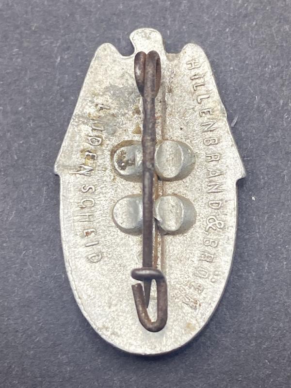 Original Aluminium day badge for the 1937 HJ sports event. Badge complete with pin maker marked for Hillenbrand & Bröer of Ludenscheid.