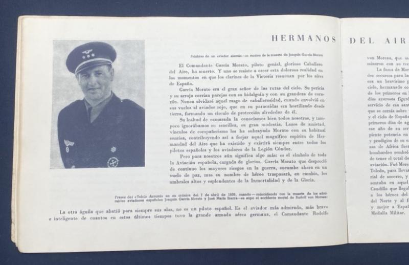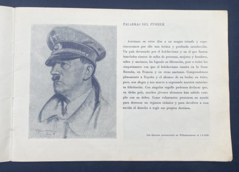 Original Spanish print of La Legion Condor se Despide. Featuring stories of Spanish and Germans fighting in the civil war of 1936-1939. Some great art and photos. Damage to the back cover as photographed.