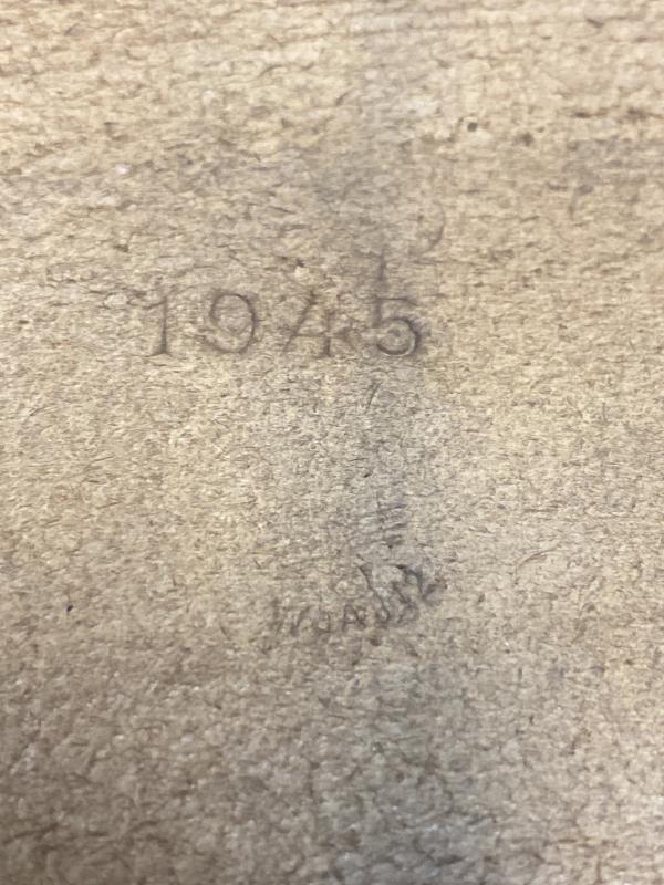 Very late war produced German army medical satchel which is part presstof (leather substitute made of pressed paper) and some real leather fittings. Ordinance tan metal front as per 1943 regulations onwards. Clear stamp present in the lid flap. An all round nice late war piece of field gear. No key present for the satchel.