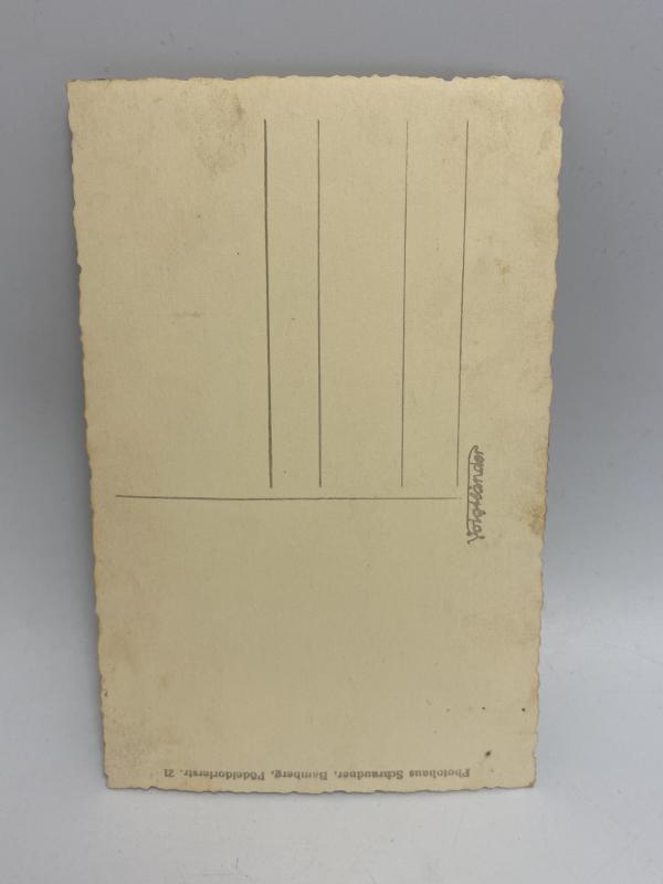 Original postcard size studio portrait. Depicting a German soldier in panzer uniform.