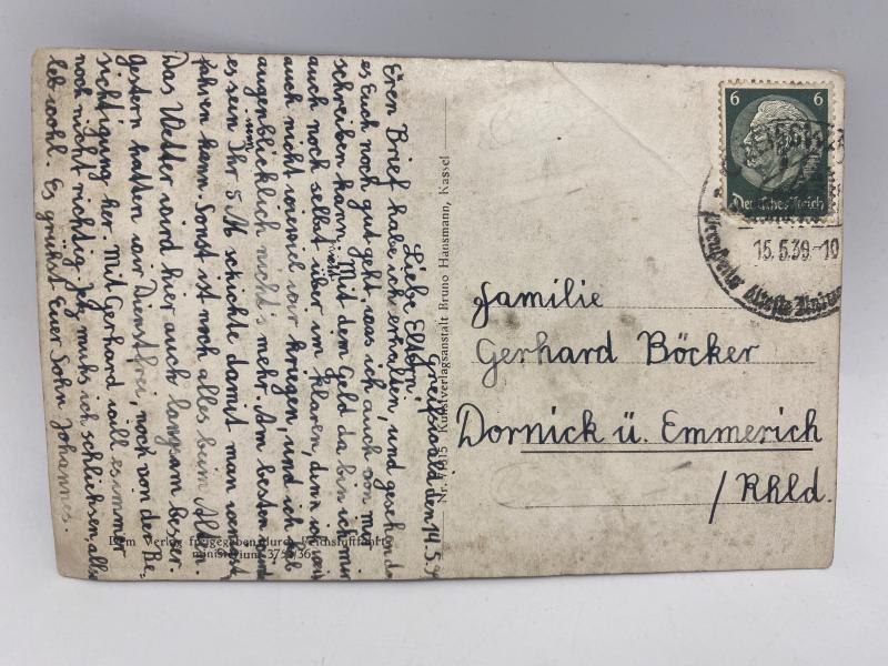 Postcard size propaganda photo of a Luftwaffe flak team using a range finder. On the reverse the postcard is fully filled with the postage stamp.
