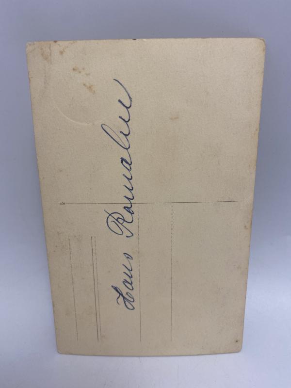 German Army soldier in full uniform. Nice studio portrait signed on the front with the soldiers name on the back.