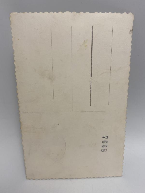 Postcard size photograph of a pre war German soldier in M36 Greatcoat and M35 helmet.