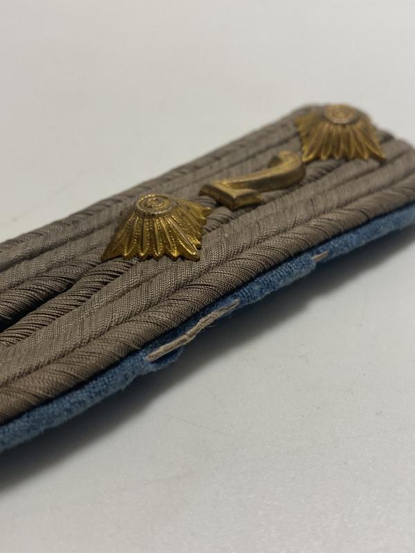Original German army shoulder board for a Transport Captain in regiment 7. A few moth nips to the piping on one side of the piece. Apart from this a nice example.