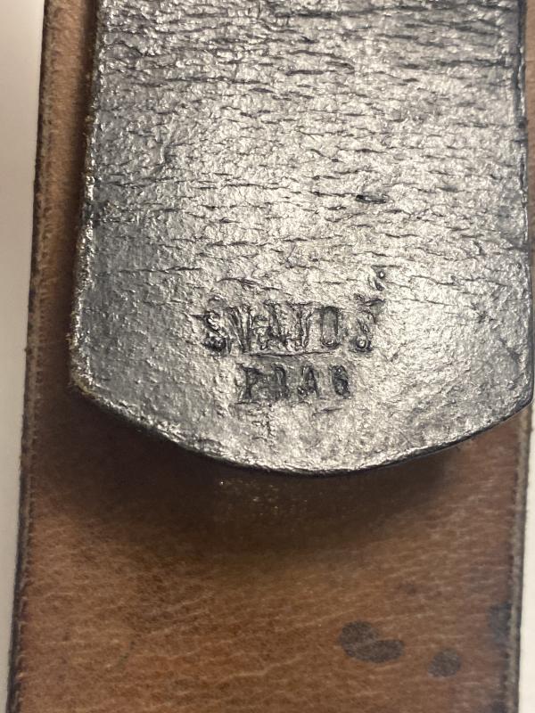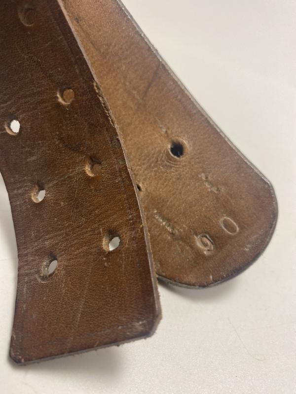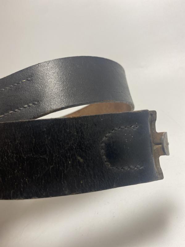 Original German army black leather combat belt manufactured by a Czech maker based in Prague. Belt is in superb condition. Complete with tongue. Size 90cm.